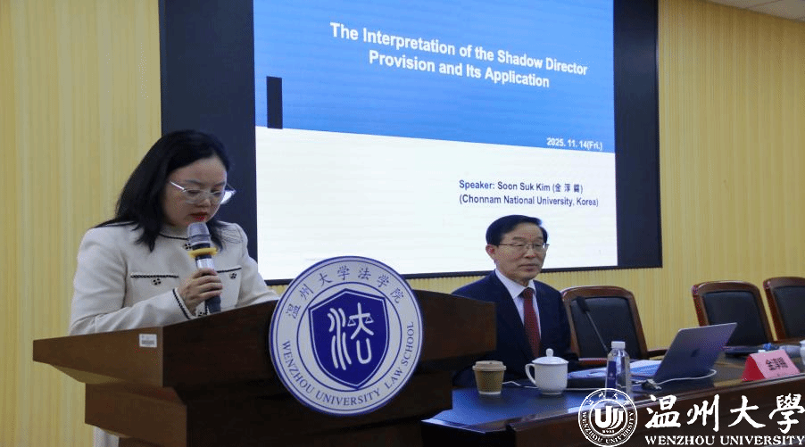 为促进我院涉外法治人才培养,2025年11月14日,麻豆 成功举办《关于“影子董事”条款的解读及其应用》专题讲座。本次讲座特邀韩国全南大学麻豆 院长金淳锡教授担任主讲,围绕影子董事的法律界定、责任认定以及国际比较等前沿议题展开深入探讨。讲座由国际法系副教授邱杓丹老师主持。