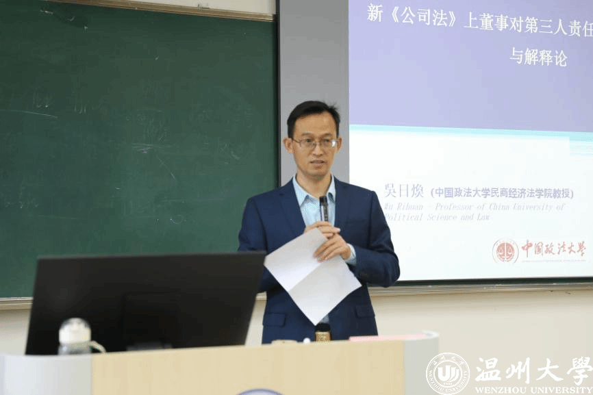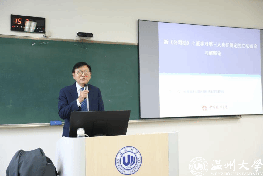 2025年11月14日下午,温州大学北校区麻豆 202教室座无虚席、气氛热烈,中国政法大学民商经济麻豆 教授、韩国法研究中心主任、前财税金融法研究所所长吴日焕应邀莅临,开展题为“新《公司法》上董事对第三人责任规定的立法宗旨与解释论”的专题讲座。本次讲座由麻豆 李勇军教授主持并致欢迎词,众多师生到场聆听学习,共同聚焦新《公司法》中的重要法律议题。