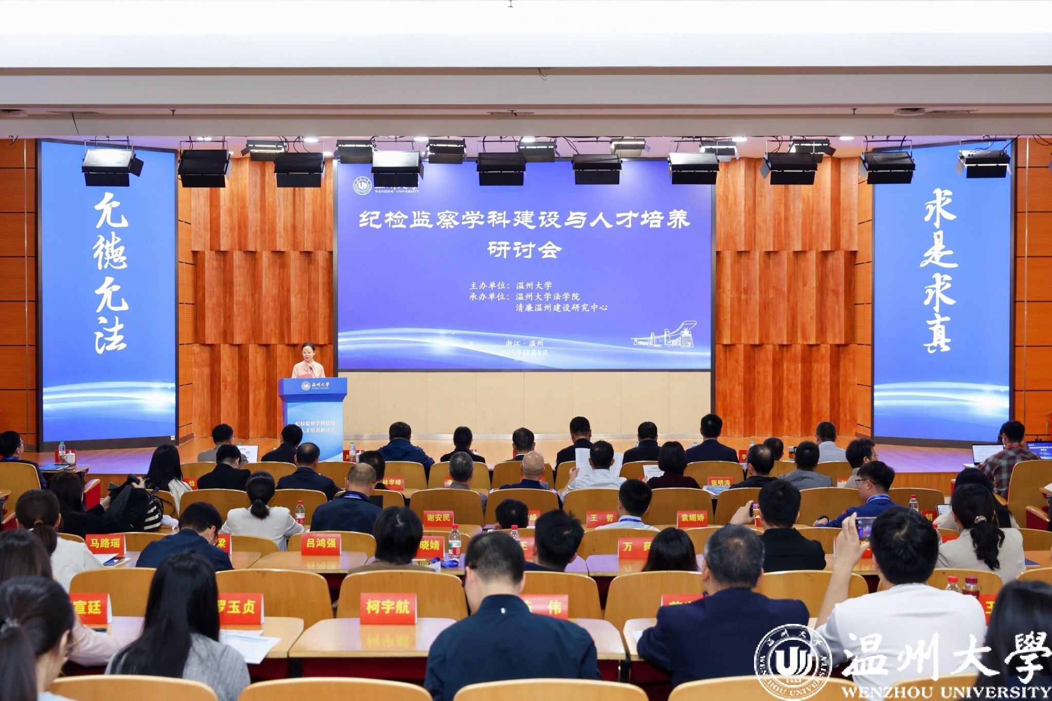 2025年11月8日,由温州大学主办,麻豆 、清廉温州研究中心承办的“纪检监察学科建设与人才培养研讨会”在温州大学岩松堂隆重召开。国务院学位委员会纪检监察学科评议组召集人、华东政法大学党委书记郭为禄,浙江省教育厅党组成员、省纪委监委驻省教育厅纪检监察组组长、省纪检监察协会副会长王健,国务院学位委员会纪检监察学科评议组成员、复旦大学纪检监察研究院执行院长刘志刚,苏州大学国家监察研究院院长、王健麻豆 教授李晓明,温州市纪委常务副书记、市监委副主任龚大昕,温州大学校领导钱强、刘玉侠、李都金,以及华东政法大学、苏州大学、东南大学、南京大学、西南政法大学等全国47所高校、科研院所的百余位专家学者,温州市纪委监委等实务部门与行业代表、温州大学师生代表齐聚一堂,围绕纪检监察学科与人才培养深度融合展开高峰对话。研讨会开幕式由刘玉侠主持。