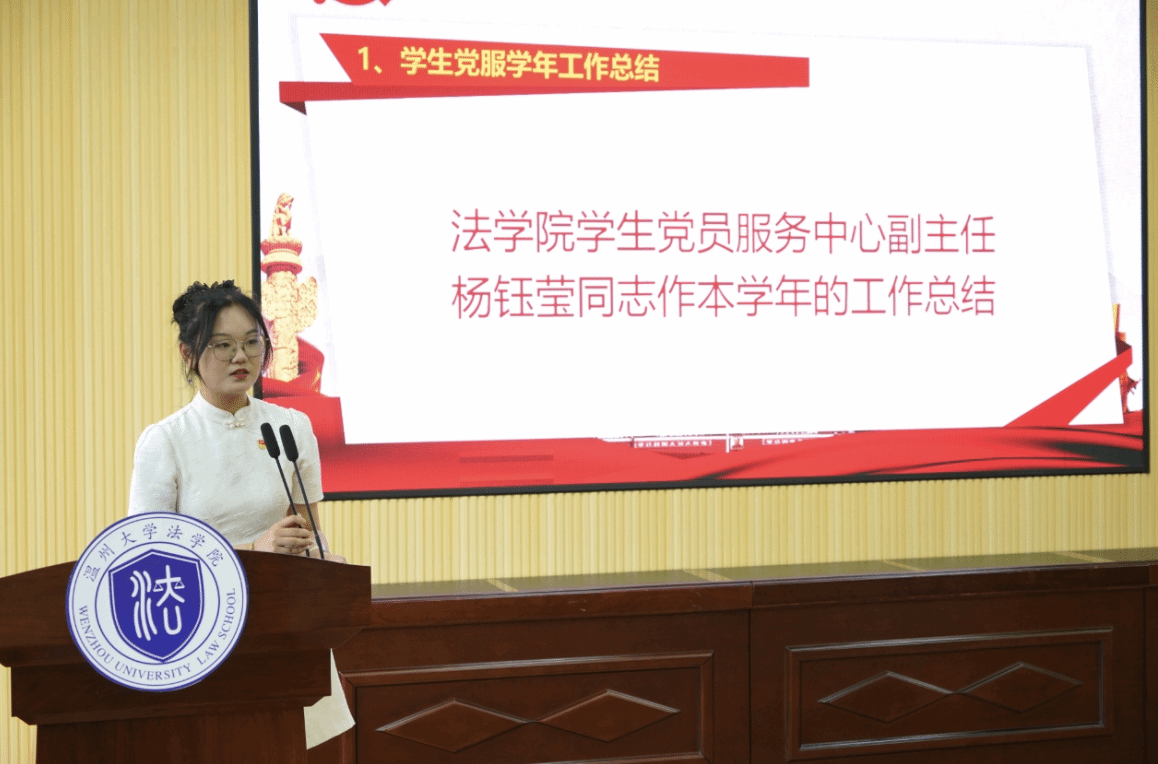 大会伊始,学院学生党员服务中心主任章鑫元同学以详实的工作数据回顾本学年工作成果。她提到,在院党委的统筹领导下,党员服务中心紧扣“强组织、优服务、促发展”工作主线,在健全组织架构、明晰岗位职责、深化党员教育、规范发展流程、创新党建活动等维度持续发力,推动多项工作迈上新台阶。随后,研究生杨钰莹同志作为上一任党服副主任分享感悟,她高度肯定历届党服成员“恪尽职守、务实高效”的工作作风,特别强调要传承好“党务小百科”的服务品牌,以更高标准提升工作质效。