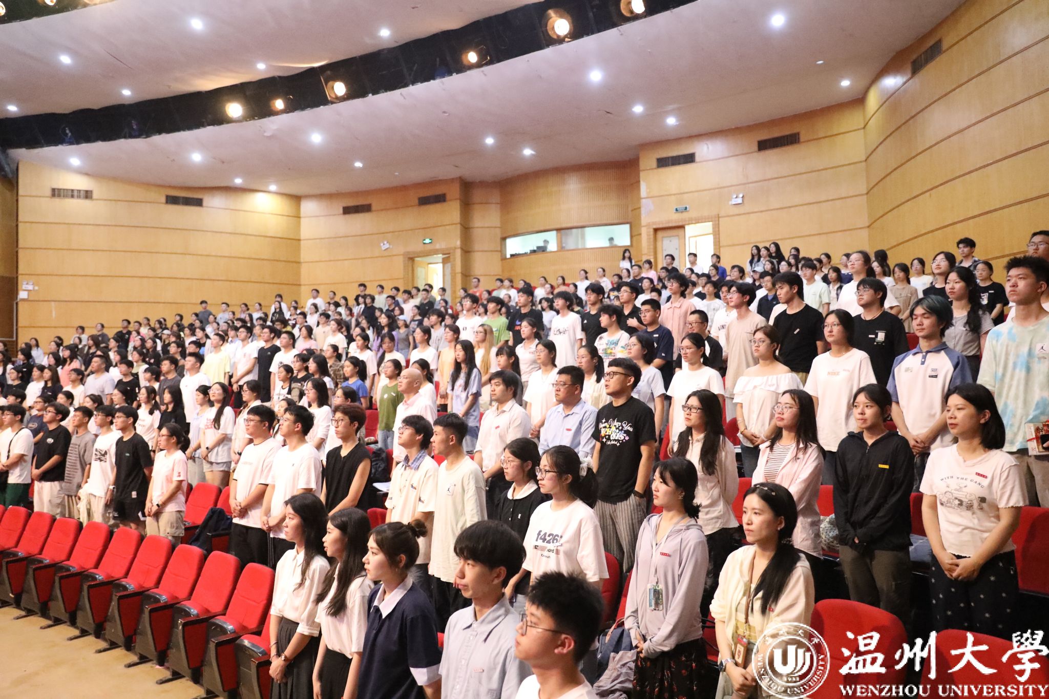 现场还举行了校徽佩戴仪式,党委副书记郑兆钧为新生代表逐一佩戴校徽,其他新生在现场同时佩戴校徽。这枚徽章不仅象征着同学们正式成为温州大学的一员,更承载着“求学问是、敢为人先”的温大精神。从此刻起,他们将肩负起温大人的责任与使命,在这片沃土上书写属于自己的成长新篇。