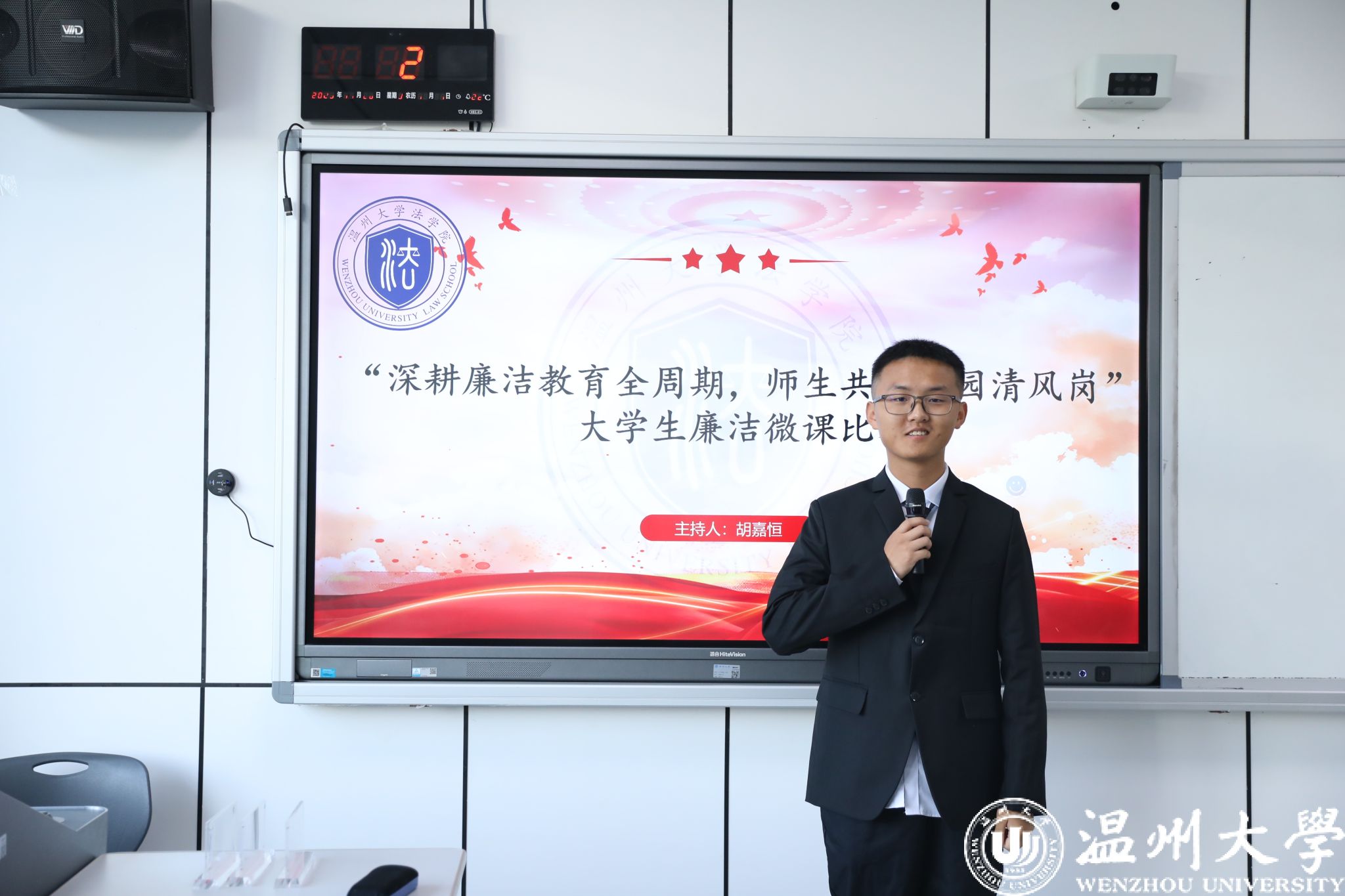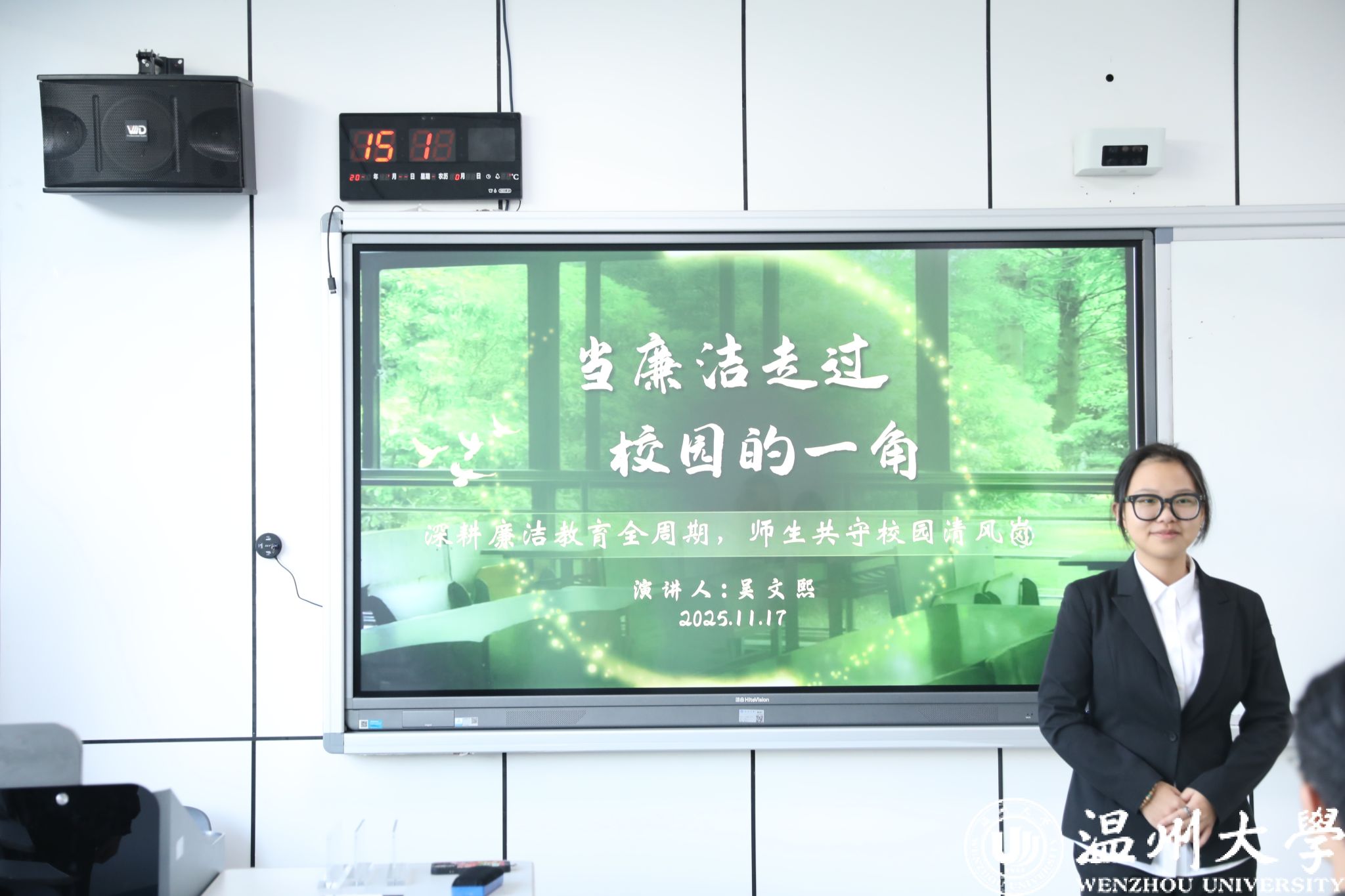 为深入学习贯彻党的二十届四中全会精神,持续推动党纪学习教育向深处扎根,全面落实新时代廉洁文化建设部署,将廉洁精神贯彻教育全过程,引导师生树立清廉作风意识,涵养清风正气,为立德立人营造清廉教育环境,麻豆 举办“深耕廉洁教育全周期 师生共守校园清风岗”大学生廉洁微课比赛。11月16日,“深耕廉洁教育全过程,师生共守校园清风岗”大学生廉洁微课大赛在麻豆 312教室拉开帷幕,本次比赛由学工办黄依瑶老师、黄素素老师、学生会执行主席杨竣程出席担任评委。